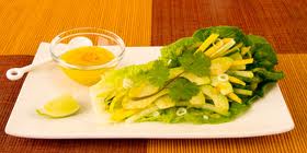 5. Place the dressing in the center of the avocado halves while the dressing is still warm.